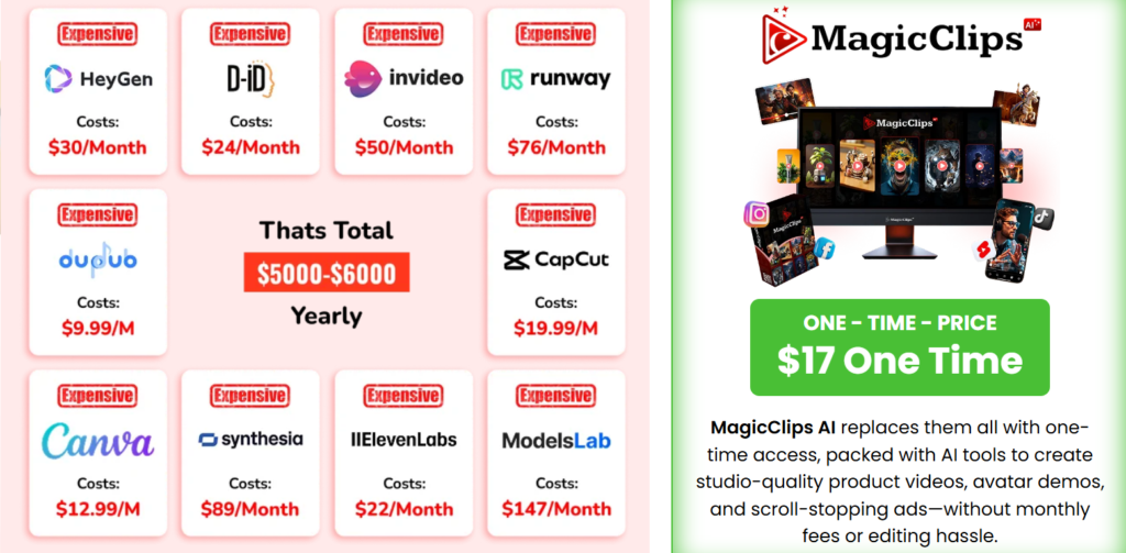Grab Your Magic Clips AI With Exclusive Bonuses Today $97/Month, Pay Just $17 One Time Pay And Use Forever! (Limitied time offer).