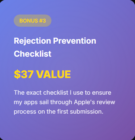 Apple’s review process is notoriously strict. This course walks you through exactly how to get approved β€” a feature missing from many programs.